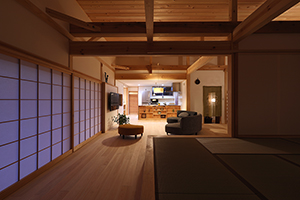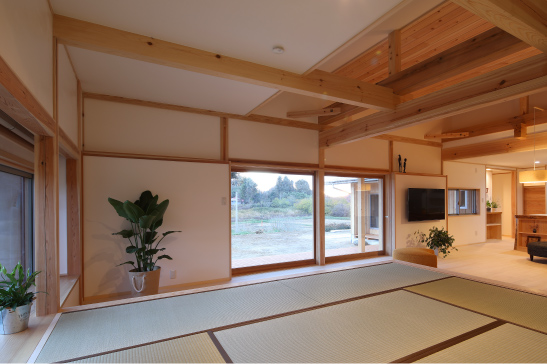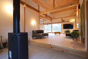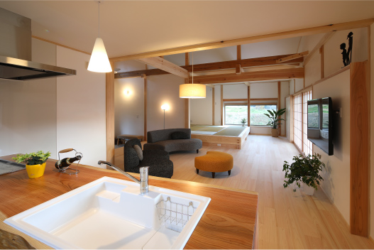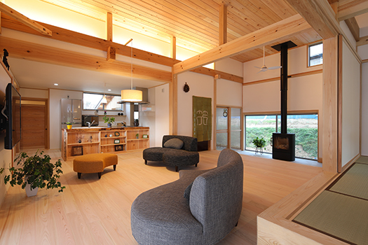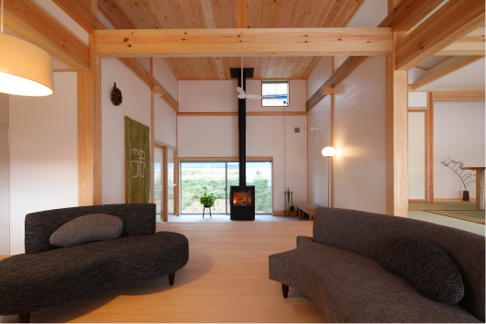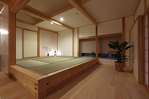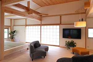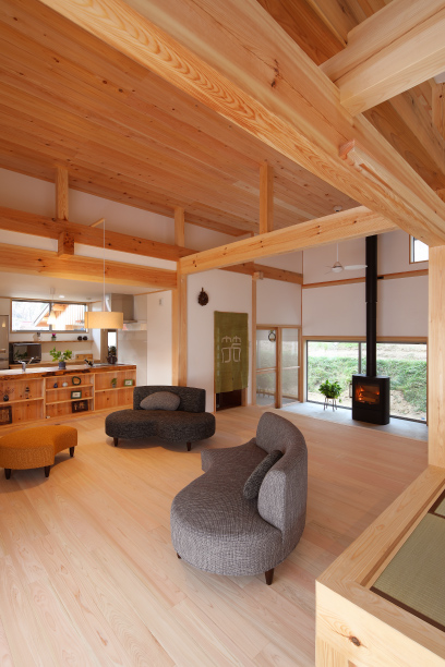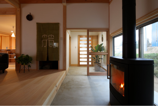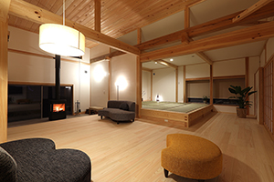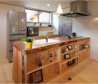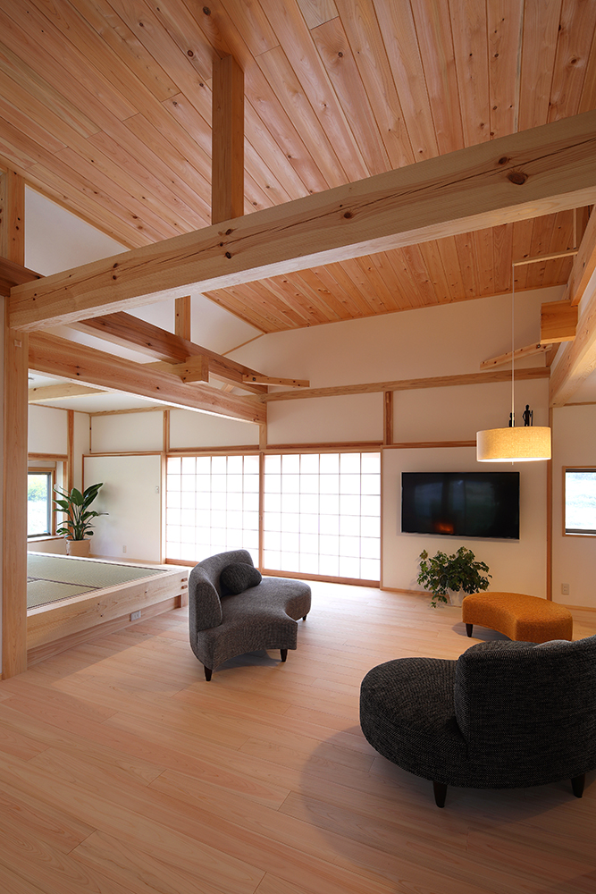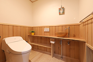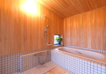 毎日の疲れを癒す、ヒノキの壁の浴室。