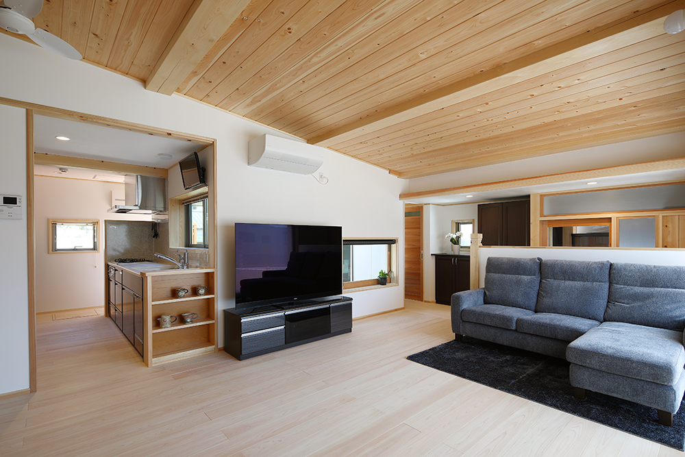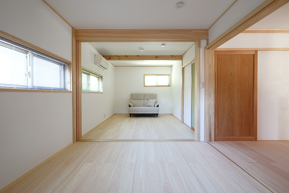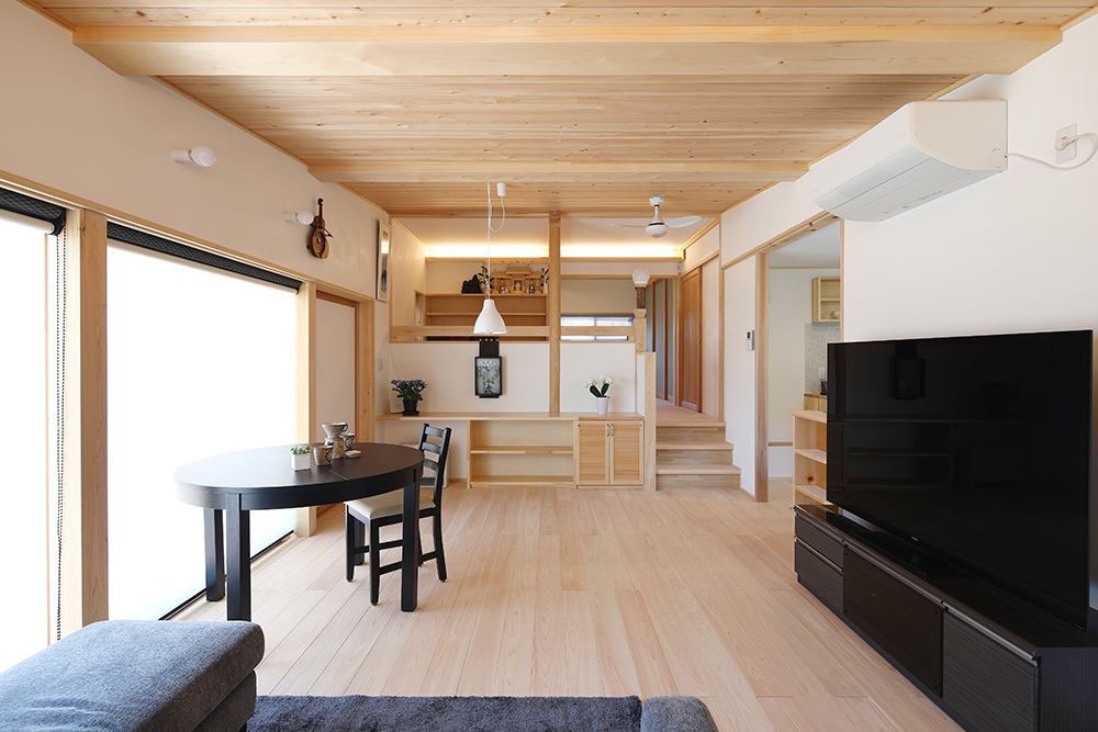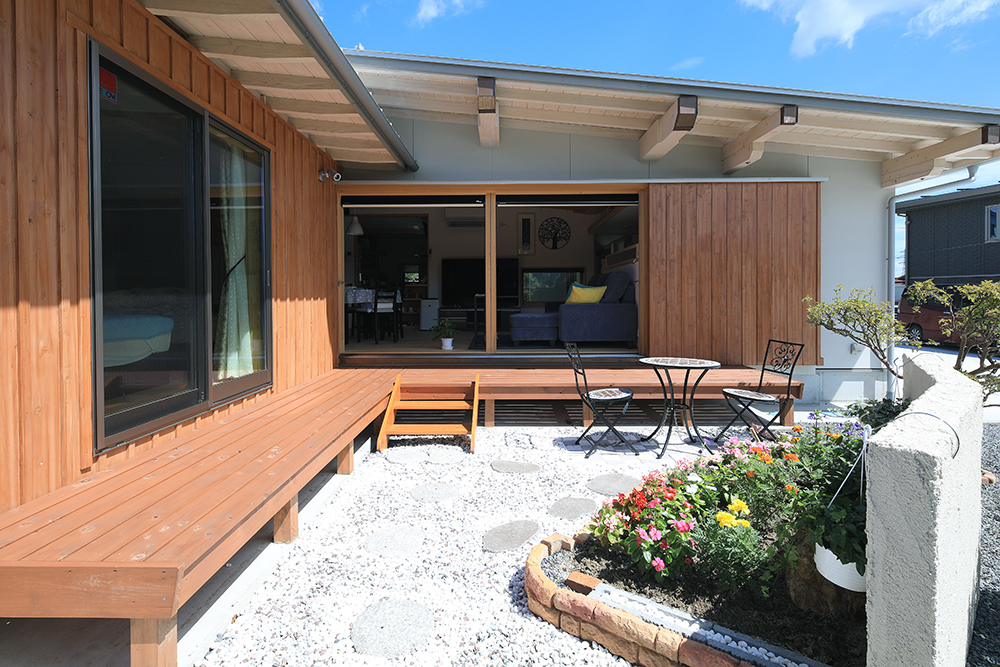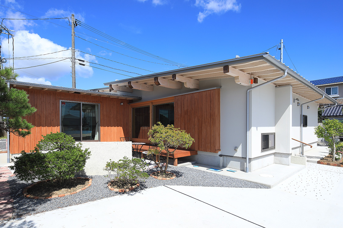 木の温もりを随所に感じる 大きな屋根が特徴的な平屋住宅。